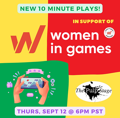 Tune in Thursday, 9/12/24 at 9 PM EST/6PM PST to catch my new short play "Fisheye Mirage" along with some other groovy new plays as part of The Pulp Stage's event in support of Women in Games!